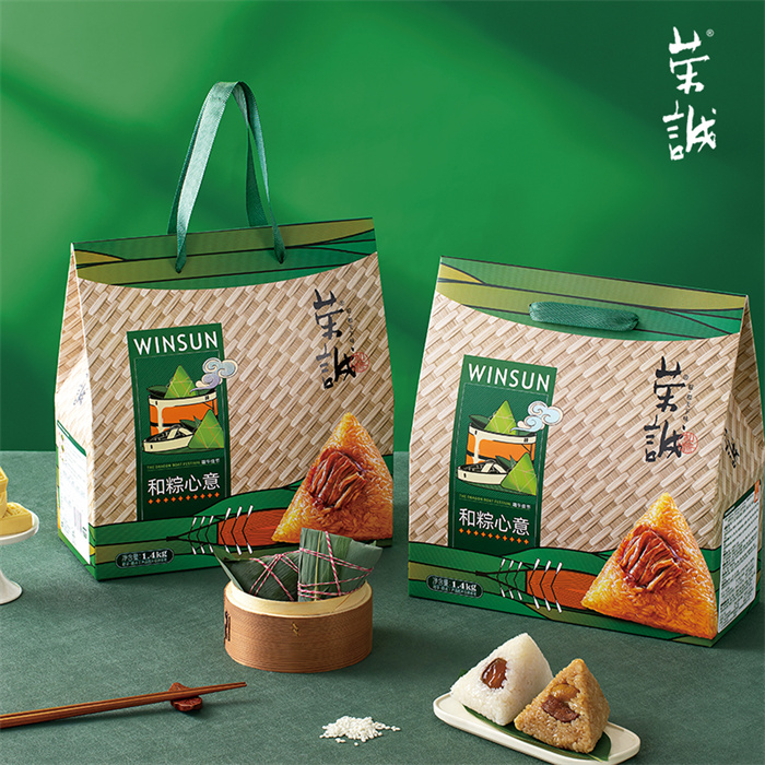 【編 碼】 HZZ2402(25) 【條形碼】 6925755533594 【尺 寸】 29.5x31x13cm 【凈含量】 1.4kg 【規(guī) 格】 1.4kgx6盒/箱 【內容物】 100g經典肉粽x2,100g板栗肉粽x2,100g香菇肉粽x2,100g豆沙粽x2,100g蜜棗粽x2,100g花生蓮子粽x2, 25g定勝糕(綠豆原味)x8